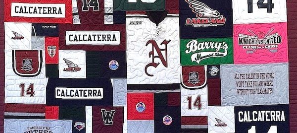 We make quilts with T-shirts – sure. But we also make them with jerseys and mesh materials. This means that we make quilts from hockey jerseys.