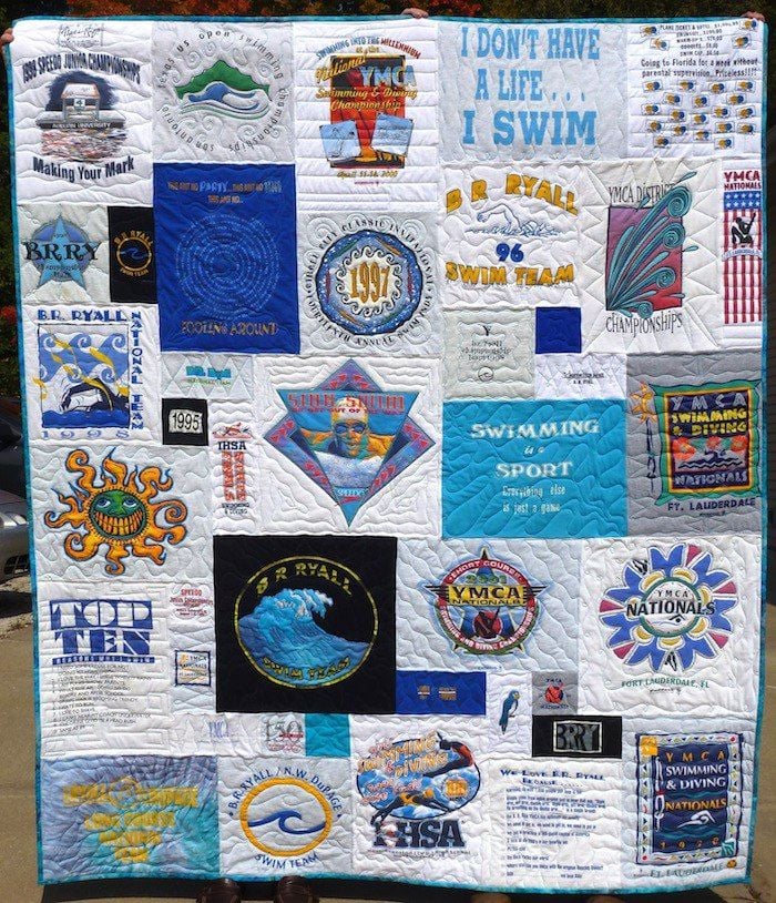 Items you can used in a T-shirt quilt for a swimmer: